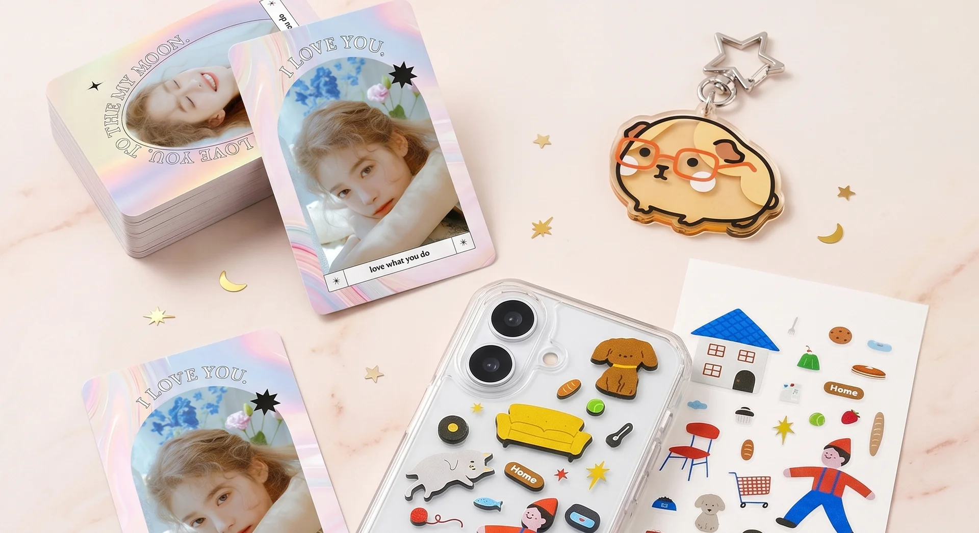 📌 사진 스티커 — 폰케이스·다이어리에 붙이는 작은 스티커. 여행 사진, 셀카, 좋아하는 이미지로 커스텀 제작. 여러 장 제작해서 친구와 교환하는 문화도 있어요.
