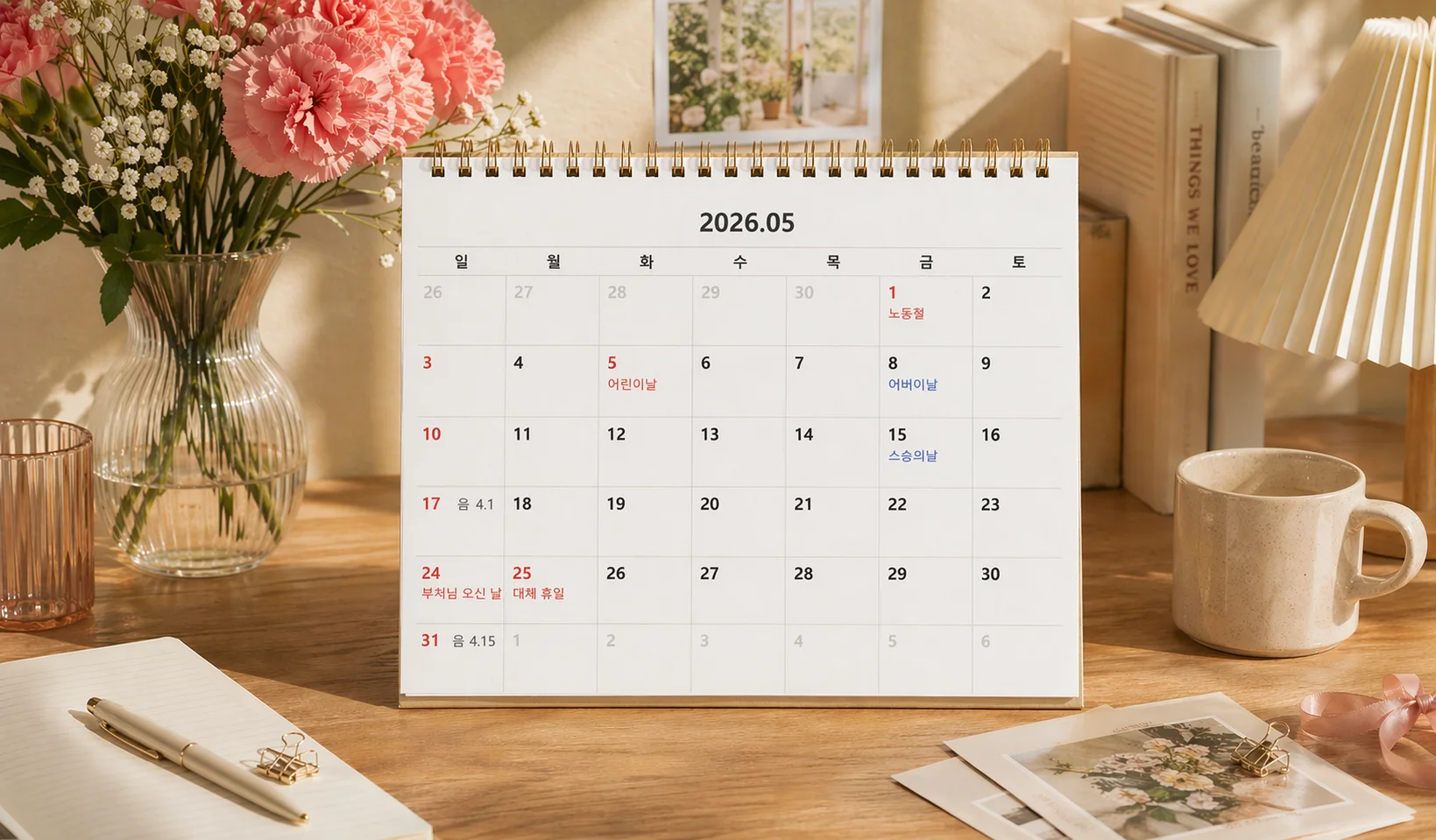 5월은 어버이날만 있는 게 아닙니다. 스승의 날(5월 15일)과 성년의 날(5월 셋째 월요일, 2026년 5월 18일)은 어버이날 다음 주에 연속으로 이어지는 "가정의 달 후반 시즌"입니다. 매년 준비가 늦어져서 아쉬웠다면, 이번 글에서 정리한 선물 조합과 포토카드·포토북 활용법으로 한 번에 해결해보세요.